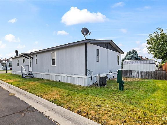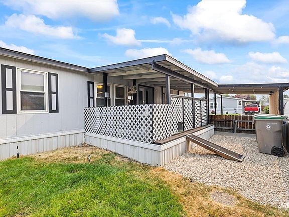 Welcome to your new home in this charming 55+ park! This 3-bedroom, 2-bath manufactured home is situated on a spacious corner lot, offering ample parking and a covered deck perfect for relaxing outdoors. The roof was replaced in February 2020, the backyard is fully fenced and the sprinkler control box was replaced this year. Inside, you'll find a fireplace, refrigerator, dishwasher, microwave, and newer stove all included. The carpet was replaced in 2019 and the home has updated easy lift blinds throughout. This home offers tons of space, storage and windows. Join the Sunflower park community and you will enjoy amenities such as a clubhouse and optional RV parking. This home includes a one year home warranty and is priced to sell in "as is" condition.
