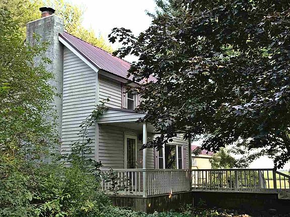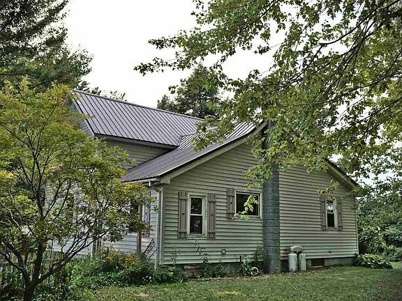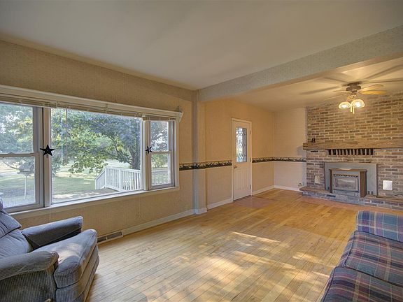 SO MUCH POTENTIAL for peaceful countryside living! This 2 bedroom (could be 3 with 11X13 walk-through room upstairs) 1 bath fixer upper with large, full basement has the potential to be a cozy country home. The large almost 2-acre yard encompasses the 1.5-story home and a HUGE 30X50 garage/pole barn large enough to store equipment for the neighboring farmland. A large deck leads into a living room with hickory floors and a working fireplace that has been converted to a corn/pellet burner. The eat-in kitchen has newer flooring and leads to a mud/laundry room with washer/dryer. One bedroom, the bath, and the laundry are all on the main level. Both the house and garage/pole barn have metal roofs. It will need more than just paint, but this cozy home surrounded by farm land and a beautifully shaded yard would make a great starter home or opportunity to downsize--or really just a great opportunity for anyone to enjoy peaceful country living! Property sold "as is."