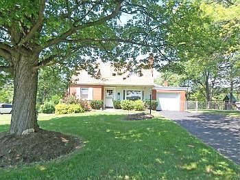 Spacious Brick Cape Cod on 1.5acre setting, approx 1900 sq.ft, 1st floor family room with additional full brick wood burning fireplace. hardwood floors, bay window and walkout to tiered deck with hot tub, formal dining room with hardwood floors and walkout to side fenced yard, Anderson wood window, 1 car attached + 6 car detached garage, roof 2002, 1 year warranty, remodeled hall bath on 2nd floor!!