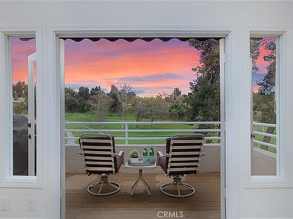 Panoramic Golf Course Views overlooking 6 holes, Oso Creek and Saddleback Mountain. Upon entering the private front courtyard with pergola, lighting & fountain, you are greeted with beautiful porcelain tile which leads to the leaded glass front door. Main floor has living area with limestone fireplace, two story ceilings, built-in stereo, new lighting & wall sconces, electric shades & French doors opening to the deck with breath taking views of the course & creek. Kitchen features Kitchen Aid stainless built-in refrigerator, dishwasher, gas cook top, cabinet pullouts, stainless Thermador hood, Jenn-Air oven & microwave, stainless trash compactor, in-kitchen dining & windows overlooking golf and the courtyard. Main floor primary suite with golf views feels like a luxury hotel with ceiling fan, dual vanities, separate shower with seat & tub with handheld faucet, linen cabinets, vanity area & large walk-in closet with organizers. The main floor powder room is remodeled with granite counter tops, new hardware & designer mirror. Inside laundry includes Samsung steam washer & dryer, abundant storage, walk-in pantry & direct access to 2 car garage. There are two spacious bedrooms with closet organizers & full bath on the lower level plus a large patio overlooking golf & mountains. Upstairs loft has shutters, built-in cabinets, desk & entertainment pullouts, plus a closet that could easily make this a 4th bedroom accommodating a queen bed. Additional features include smart Wi-Fi HVAC system with air cleaner, recent PEX re-pipe, Ring doorbell, new exterior lighting, multiple outdoor patios, outdoor awning, dimmers, LED lighting, shutters, built-in speakers with volume controls, dual pane windows, Venetian bronze door hardware, crown moulding, upgraded baseboards, window casings, pull-out front door screen, natural gas access on front patio & deck for firepit or BBQ to maximize indoor/outdoor living. Additional storage area under the home. This home is move in ready with new carpet, luxury vinyl flooring and paint inside/out. Cypress Point resort style amenities include pool, spa, clubhouse, game nights, Lake Mission Viejo right across the street with beaches, boating, trails, fireworks, events, concerts & the public Oso Creek Golf Course with 3,760 yard course, club house, Terrace on the Green restaurant, lessons, men’s & women’s golf groups.
