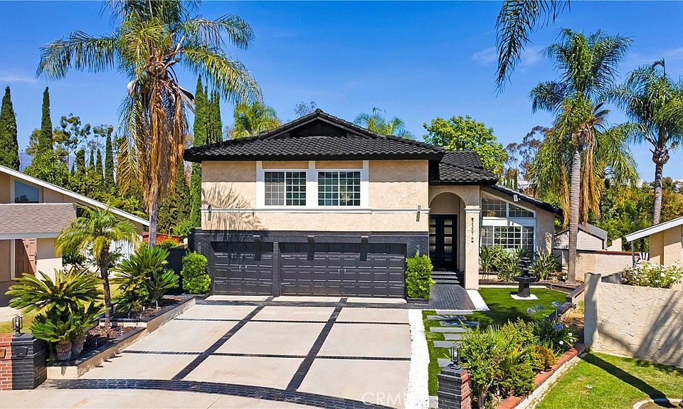Welcome to your dream home! Nestled on a generous 13,000+ sq ft lot, this open concept residence with a pool & spa offers a rare combination of spacious luxury, modern upgrades, and resort-style living. Featuring 4 bedrooms—including two expansive master suites—and 3.5 beautifully updated bathrooms, this home is thoughtfully designed to accommodate both families and entertainers alike. Upon entry, you are greeted by white marble flooring throughout the main level, a striking black marble TV wall with a built-in electric fireplace that adds contemporary elegance to the main living space. Step inside a chef’s dream kitchen boasting high-end Dacor appliances, push-to-open custom cabinets with pull-out drawers, accent lighting, and an extra-large quartz stone island, providing both style and function. Enjoy additional luxury touches including a modern wine bar under the staircase, water-resistant laminate upstairs, and recessed ceiling lights that create a bright and welcoming ambiance in every corner of this home. The oversized glass sliding doors lead to your private backyard oasis, complete with lush tropical landscaping, swaying palm trees, a spacious swimming pool with a tranquil waterfall, and a relaxing jacuzzi. The expansive yard offers incredible versatility, with ample room to add a pickleball court, basketball court, or even build an ADU—ideal for multigenerational living or investment purposes.The front yard is fully remodeled with brand new turf, decorative white stones, and a water feature, ensuring beautiful curb appeal year-round. Don’t miss this rare opportunity to own a modern, resort-style home with endless potential!