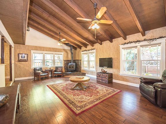 This is it! Large home in Gold Springs Ranch on One Acre. The main entry level includes large living and dining rooms with vaulted, beam ceilings, kitchen, three bedrooms (including the master) and two baths on this level. Downstairs is a family room, two bedrooms, nicely "remodeled" bath, laundry, "In-law" kitchen and living room and can be accessed from the main floor or from a separate outside entrance. The entire downstairs can be easily sectioned (locked) off as a "studio", one, or two bedroom living quarters. A new deck was recently built with lots of space for outside barbeques. Enjoy plenty of yard area and the several fruit trees.