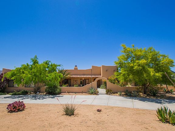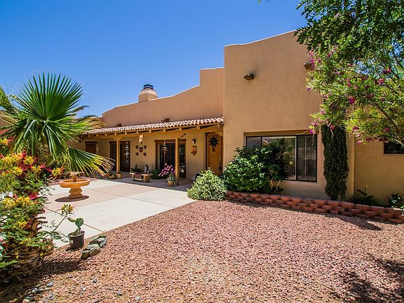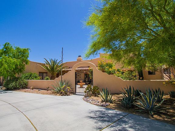 Custom home with southwest styling inside and out. Private gated courtyard with access from formal living/dining rooms. Office/den off main entry, offers custom designed cabinets, storage and work space. Lg kitchen and breakfast area loaded with appointments, rich wood cabinetry, all appliances and great view. Family Room has stylish fireplace, wet bar and outdoor access. Split floor plan w/ 2 BR's, full bath and laundry in one wing, Master suite has foyer/entry accented by double doors, fireplace & on-suite bath, with walk-in tiled shower, jetted tub and huge closet. Exercise room off master. Beamed ceilings thru-out offering character and charm. Side load oversized 4 car garage & fully fenced perimeter. Enjoy the peace and serenity of this Sycamore Rocks location with views of the valley and local mountains