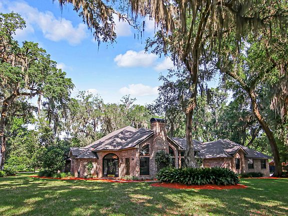 This elegant brick home is located in one of the most attractive, architecturally diverse neighborhoods on Fleming Island. Terrific open floor plan with large living room, formal dining area, family room & sitting area with fireplace. The ceilings are extremely high with crown moldings throughout. Palladian windows bringing in tons of natural light. Remodeled kitchen with beautiful cherry cabinets, Cambria counters, stainless appliances, a breakfast bar & eat in area for causal dining. The master suite encompasses a lavish sitting area, updated bath with steam shower, vita spa tub with heater & designer closet. Two other bedrooms are separated by a high end designer bath. This luxury home is surrounded by a park like, fully fenced double lot back yard.