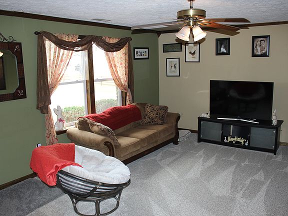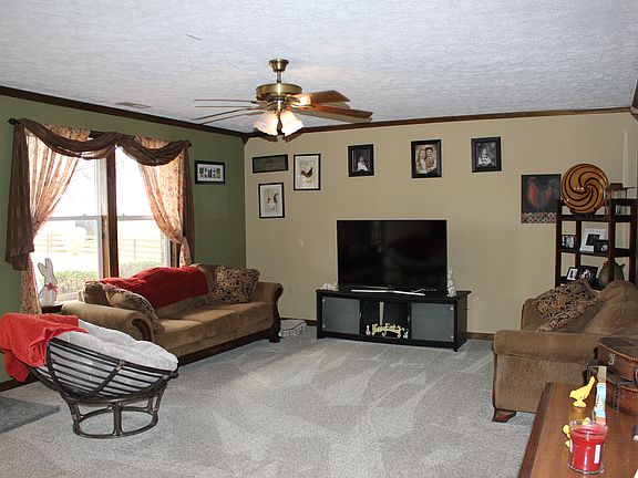 Beautiful fenced in brick ranch with black top drive. Detached pole barn with finished floor, separate rock drive. Fenced in portion flat and manicured lawn with extra attention! Several windows allowing breeze and viewing of lawn. Fire pit in backyard with concrete base allowing for easy clean up. Shed allows for extra storage space. Only 6 miles from Kroger, but also gives you the perfect rural setting.