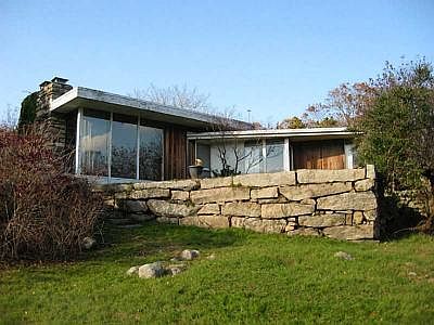 COUNTRY HOME BY ROCKWELL DUMOULIN AIA.WRITTEN UP IN PROGRESSIVE ARCHITECTURE'S "PENCIL POINTS", 1944. THE LIVING ROOM'S FLOOR TO CEILING WINDOWS LOOK OUT ON THE ROLLING FIELD AND POND. THERE IS A SEPARATE STUDIO OR POSSIBLE GUEST HOUSE ON SITE.