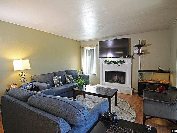 This cozy two-bedroom, one bath condo is situated on the ground level in a park like setting. Some notable features of the unit include a custom window seat in the dining area, beautiful updated fireplace, newly painted kitchen and bathroom cabinets, new shower doors and life proof laminate flooring in bathroom and recently serviced A/C. There is newer laminate wood flooring in kitchen, dining room, living room and hallway. Extra storage closet on patio and in designated covered car port.