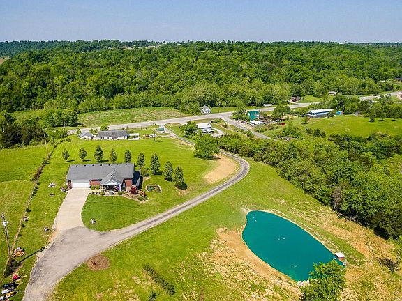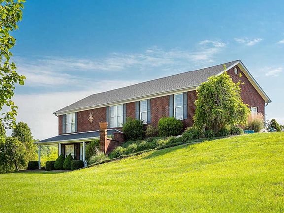 Situated on a hilltop in Mt. Washington, this brick home has a lot to offer! The breath taking view of the surrounding area & land will make it hard for you to move beyond the covered patio. However, you will want to venture to your 2 ponds (1 fully stocked) and really soak in the beauty. As you enter the home you will be immediately impressed by the gorgeous floors & custom ceilings throughout. The spacious great room, which is open to the dining room & kitchen, make this home a great place to host friends and family. Downstairs, you will find a huge master suite, as well as 2 additional bedrooms. Your new home includes a geothermal system, keeping your utilities green. The property also includes outbuilding with plenty of storage.