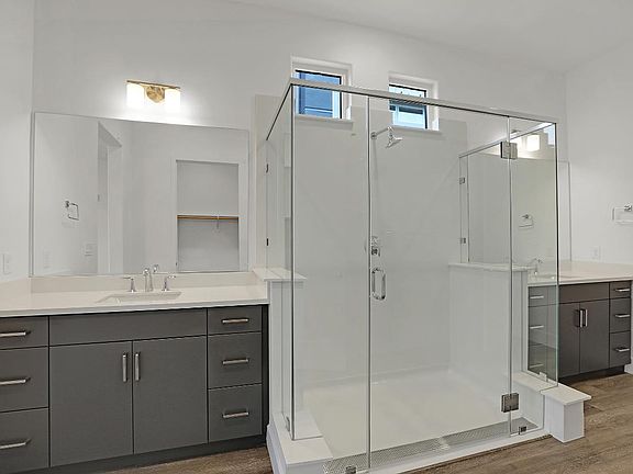 Move-in ready! Live in elevated luxury in this 2 bedroom home plus flex room. Single-level flat on main level with 2-car, side-by-side garage. This home offers private access from garage with additional storage. Expansive great room leading to covered balcony perfect for entertaining. Well-equipped kitchen with pantry, stainless steel appliances and upgraded Battleship Grey cabinets with glass uppers. Quartz kitchen countertop with designer-selected tile backsplash. Modern cool designer package finishes. Disclaimer: Photos are images only and should not be relied upon to confirm applicable features.