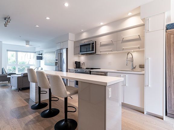 Sleek finishesModern kitchenStainless steel appliancesStone counter topsPrivate outdoor spaceRadiant heatingSecured garage