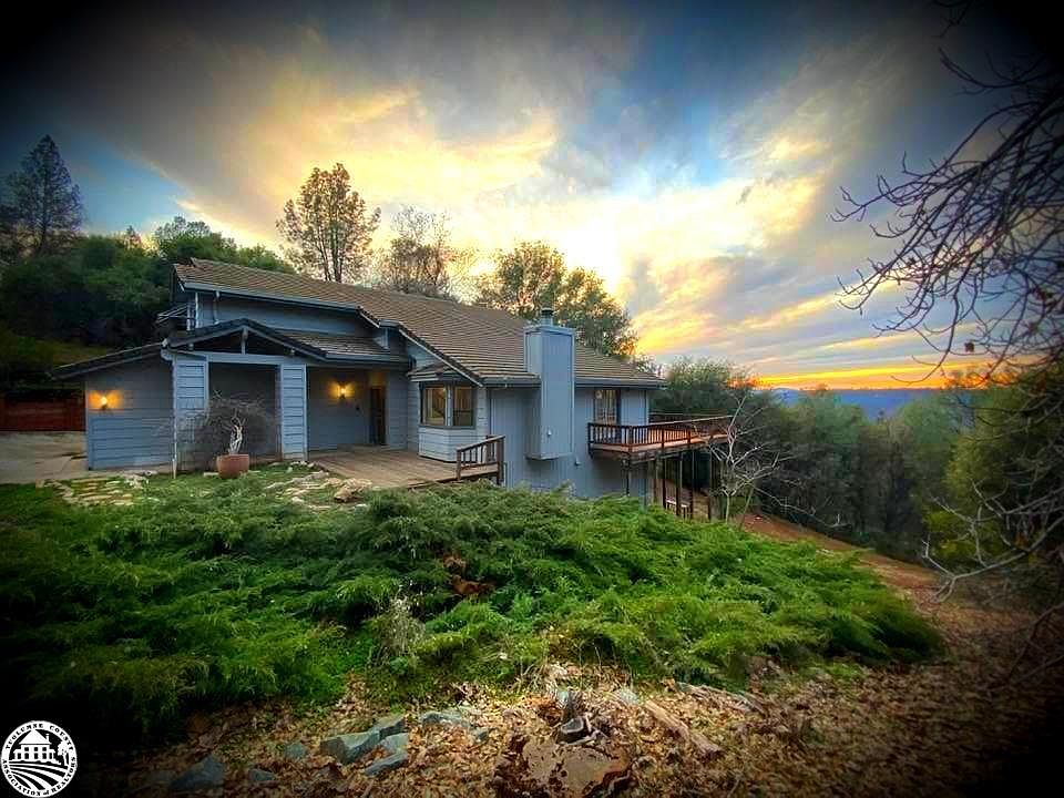 MOTIVATED SELLER OFFERING $10,000 to BUYER CLOSING COSTS. Highly sought after Gold Springs Ranch. This mountain home is nicely situated on a 1.19 acre lot overlooking a perfect California sunset and mountain view. This 2719 SF. home offers 5 Bedrooms with 4 full bathrooms, including an entry level bedroom and multiple master suites with walk in closets. The Large suite downstairs has indoor and outdoor entrance, perfect for in-laws, home office, gym and more. From the entry, you'll walk into a large Living room with cathedral ceilings, providing tons of natural light, an opulent marble fireplace with an ornate wood mantle and French doors that beckon you to the wraparound deck featuring a large covered area with an outdoor fan. The kitchen takes center stage between the family room and living room featuring a gas range, tons of cabinet space, and another opportunity to take in the view while you cook. The separate family room features a wood stove with a stone surround and a second entrance to the covered deck. Plenty of room for all of your toys in the attached 3-car garage, plus a parking pad and space for RV or boat parking to the side. This Convenient location - location - location - is only minutes to New Melones Lake, historic Columbia, Murphy's, Angels Camp, & Sonora. Call today to view this lovely home.