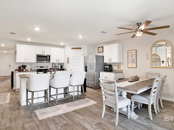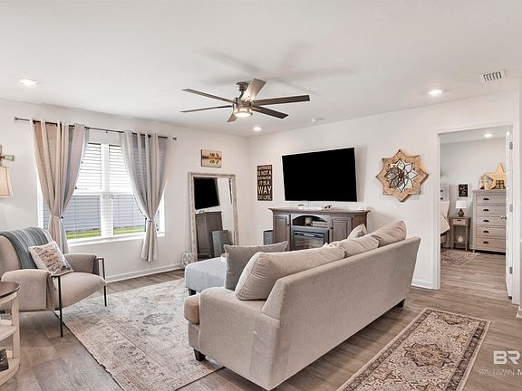 Better than new in this Eastern Shore cottage conveniently located in Jubilee Farms of Daphne with easy access to I-10. Popular one level design with 4 bedrooms and open floorplan for easy living and entertaining. Gold fortified and built in 2023. Lots of natural light and LVP flooring throughout with numerous upgrades since construction. Screened porch, gutters and level privacy fenced backyard overlooking an undeveloped area. Large kitchen with center island breakfast bar and walk in pantry with custom shelving. Spacious primary bedroom and bath with garden tub, separate shower and walk in closet. Neighborhood amenities include resort style pools, clubhouse, yoga room, fitness room, playground, walking trails, 2 stocked ponds with fishing pier and more. This home is like new and priced to sell! All information provided is deemed reliable but not guaranteed. Buyer or buyer’s agent to verify all information.