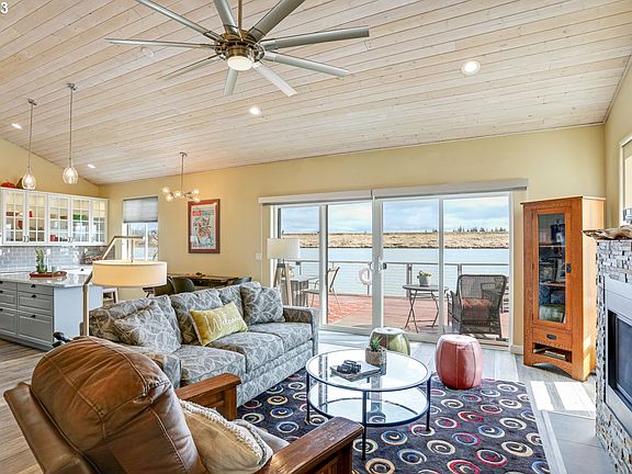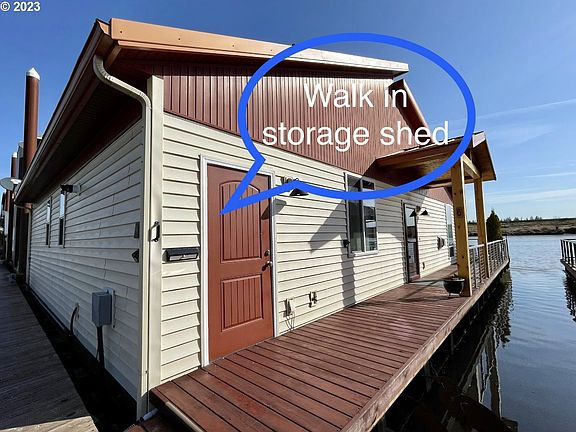 This floating house has a very open & spacious kitchen & living room with massive vaulted ceilings. The wide footprint allows for a large kitchen featuring quartz & island with eating bar. Bring your big couch for the living room with gas fireplace and burl wood mantle. Walk in shed on side of house with hot water on demand & whole house water filter system. 19 years remaining on 3% rent cap! Ammenties: Gated, kayak storage, rec room w/ full kitchen, workout room, garden boxes, & fuel dock.