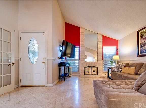 Fabulous single story residence with a private backyard oasis that consists of pebble tec pool & spa, covered patio, built in barbeque island with a refrigerator and sink; and mature avocado, pear, pomegranate, and apple trees. The faade is accented by brick, flower beds, mature trees, and the Spanish tile roof outline. This property features a quaint front courtyard, living room with brick fireplace, formal dining room, and large kitchen with a breakfast nook that is open to the family room, all with cathedral ceilings; pantry, inside laundry, linen closets, and a large dog run side yard. The spacious master bedroom has a walk-in closet, French doors leading to an enclosed workout room, and the master bathroom has an oversized tub. Upgrades include new double pane windows, recessed lighting, travertine and vinyl flooring, granite countertops, and ceiling fans. This property is close to shopping and the 5 freeway, located next to a middle school. No HOA fees or Mello-Roos taxes.