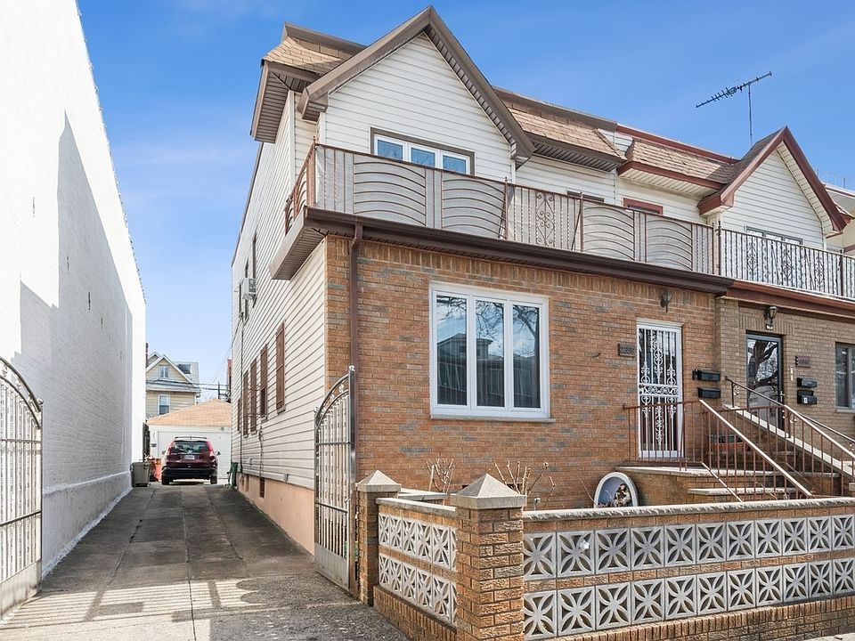 Bensonhurst-2 Family semi-detached home, First Floor-2/3 bedrooms, living room, dining room, full modern bath, kitchen, yard access, Second Floor-3 bedrooms plus open porch in front, living room, dining room, modern kitchen with granite countertops, basement-finished with full bath, rear entrance, brand new gas boiler and hot water heater, ***10' WIDE PRIVATE DRIVE for 4 cars plus 2 car detached garage***, oversized rear yard perfect for gardening, family gatherings or extra parking, vinyl siding, awesome location, close to all shopping, schools and transportation, full possession at closing, House Size 20'x53', Lot Size 30'x100', Year Built 1930, Taxes $7,835