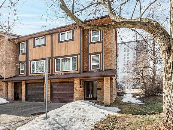This beautifully maintained end-unit townhome offers the perfect blend of modern elegance and warm, inviting charm. Thoughtfully updated, it features a stylish eat-in kitchen with contemporary finishes, pot lights, and a walkout to a private balcony, ideal for enjoying your morning coffee. The spacious, finished recreation room also boasts a walkout and offers versatile use, including the potential for an in-law suite. Gleaming hardwood floors and a stunning staircase enhance the home's timeless appeal, while the renovated bathrooms and convenient in-house garage entrance add to its functionality. With three generously sized bedrooms, this home provides ample space for comfortable living. Nestled in a small, well-managed complex just minutes from transit and shopping, this home has been meticulously cared for and freshly painted throughout. Light-filled and welcoming, it radiates warmth, making it easy to envision yourself settling in and creating lasting memories. Every detail reflects the pride of ownership, ensuring a move-in-ready experience for its next owner.