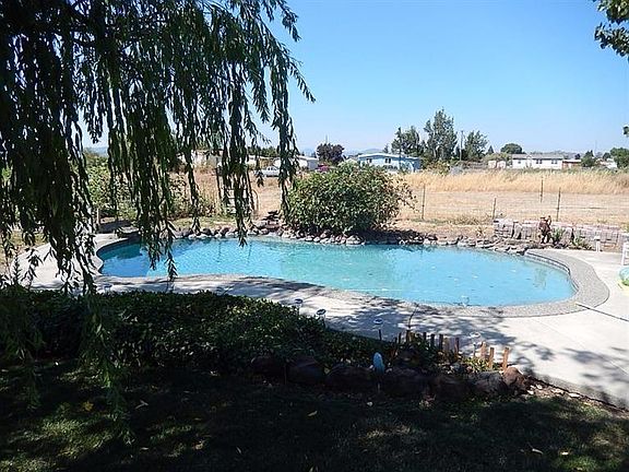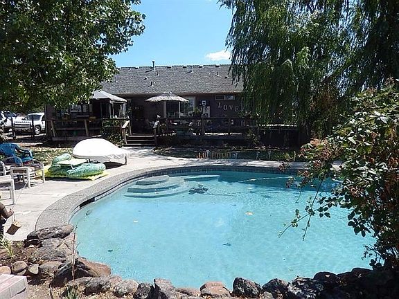 Country/close-in gem. Beautifully updated. Inviting-open great room. Wonderful kitchen w/lots of counters, solid wood cabinets, stainless gas range/oven & refrigerator. Spacious dining area & liv. rm. Huge masterbdrm w/ huge walk-in closet,lovely bath, exterior door to wonderful hot tub, Lagoon,Inground Salt Water Pool, relaxing backyard, deck, gas BBQ. Could be extended family living set-up. Large 2nd bedrm (closest was incorporated into masterbdrm closet but could be changed back) Ceiling fans. Newer roof. New water htr. pool salt system, many more upgrades. Detached Garage/Shop. Barn w/stalls. Pasture. Cost to obtain irrigation when available-approx. $4,000. Chicken coop. Greenhouse. City sewer. Good well. Lots of parking. Country living-w/room for your animals, toys, entertaining in beautiful backyard w/pool. Yet minutes to town, shopping, great schools. This property has so much to offer.