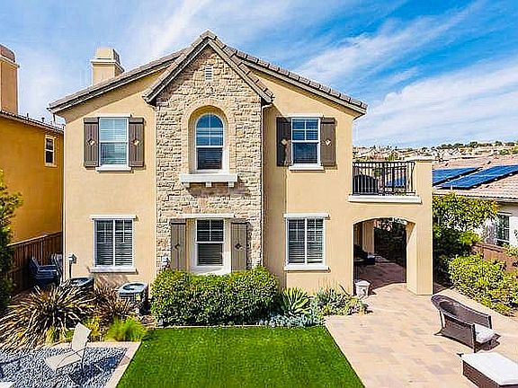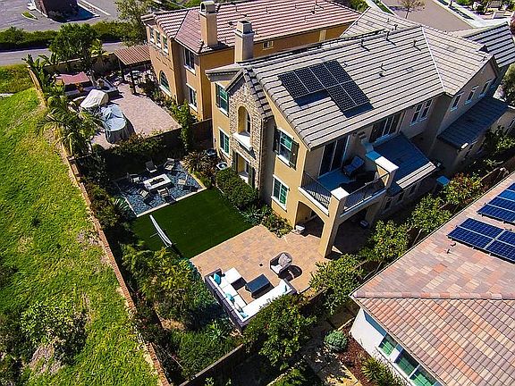 Coastal Carlsbad living at its finest in highly desirable La Costa Greens. Once inside the home, discover the airy foyer and an office or optional downstairs bedroom off the entry. The formal dining room features a faux exposed brick wall for formal dinner parties. The open kitchen with lots of natural light and family room are an entertainers dream! Kitchen features Caesar stone countertops, a huge center island with breakfast bar that sits 8, stainless steel appliances and ample cabinetry. Attached family room opens up to the private backyard with brick patio, artificial turf area, and cozy fire pit. Upstairs you will find two generously sized bedrooms, with en suite baths, a roomy loft area and a master suite. The master suite features a private balcony, his and hers vanities, soaking tub, walk in shower and oversized walk in closet. 3-car garage with one of the spaces converted to a sound proof studio for your Musician in the Family. Say goodbye to high electric bill with a $30,000+ PAID Solar Panels. Access to the Presidio Activity Center in La Costa Green, close to shopping, restaurants, coffee shops, Cinepolis, beaches and more!