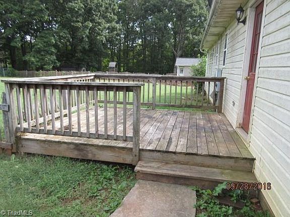 Great location for Winston Salem, High Point or Kernersville, private road with large lot (almost an acre), 3BRs and 2 Baths, rear deck. Property sold as is