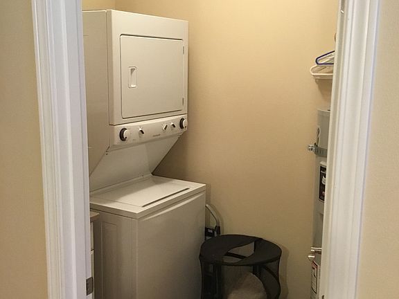 Separate laundry room with stackable washer/dryer