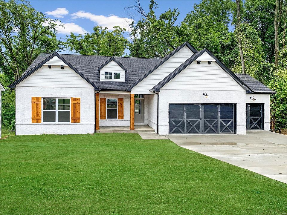 Boasting w/ immense detail, top end finishes & an impressive design, this newly constructed modern-chic farmhouse is the home you've been looking for. Beyond a functional entryway space, home flows into a luminous, open-concept living, dining, & kitchen area. Sleek kitchen is equipped w/quartz countertops, tile backsplash, farmhouse sink, stylish cabinets, range hood, a suite of high-end appliances & center island. Great room with gas fireplace & wall of glass doors w/ transom windows that lead to the maintenance free deck w/ beautiful views of the woods. Master suite features coffered ceiling, tub & sep custom tiled shower, dual sinks, stylish finishes & custom closet opening to the laundry room. Also on the main you will find 2 generous sized bedrooms w/full bath. Walk out/finished LL offers a 4th bedroom, full bath, family rm, huge rec rm & loads of storage space. Other feat incl. oversized 3 car garage, custom shutters, mud rm w/cubbies, powder room & 9' solid walnut front door.