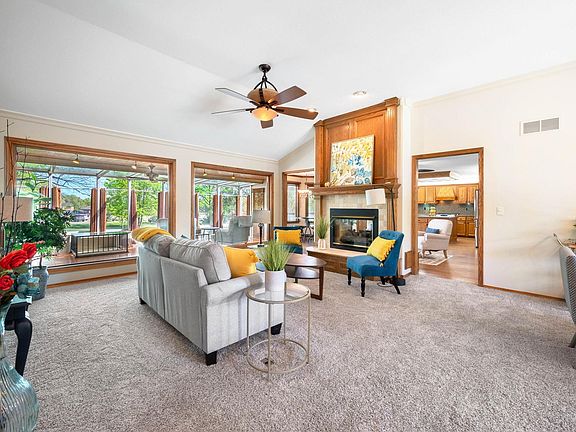 Your Dream Lifestyle Awaits! Reflection Ridge ranch home backing to community amenities on a prime cul-de-sac lot! Imagine a life of comfort and convenience in this stunning 4-bedroom, 4-full-bathroom home nestled on a desirable cul-de-sac lot. This isn't just a house; it's a lifestyle, with your backyard opening directly to the neighborhood pool, tennis & pickle ball courts, playground, and golf course! Step inside and be greeted by fresh, new interior paint and plush new carpeting on the main floor, creating a bright and inviting atmosphere. With an incredible five living areas throughout the home, there's space for everyone and every occasion. The heart of the home is the large kitchen, a chef's delight with stainless steel appliances, including a 3-oven setup and a gas cooktop range. Storage will never be an issue with the large walk-in pantry conveniently located off the garage. Just steps away, you'll find a large laundry room and full bathroom. Enjoy the outdoors from not one, but two charming front patios, perfect for morning coffee or evening chats. The expansive newly stained back deck beckons for summer barbecues and relaxation, overlooking the community amenities. Soak up the sun year-round in the delightful sunroom. Retreat to the spacious master bedroom featuring a luxurious ensuite bathroom complete with a relaxing separate tub and shower combo and a generous walk-in closet. The finished basement extends your living space with a large family room, perfect for movie nights or entertaining. A cozy two-way fireplace adds warmth and ambiance, while the wet bar makes hosting a breeze. You'll also find a private hot tub room for ultimate relaxation, an additional rec room facing the two way fireplace, two more bedrooms, and another full bathroom. Peace of mind comes with significant updates, including a brand new electrical sub panel, newer heat and air conditioning system, and a newer hot water tank. This exceptional home offers an unparalleled combination of space, style, and location. Don't miss your chance to live the resort lifestyle every day! Schedule your showing today! Pool & golf membership is not included in home ownership.