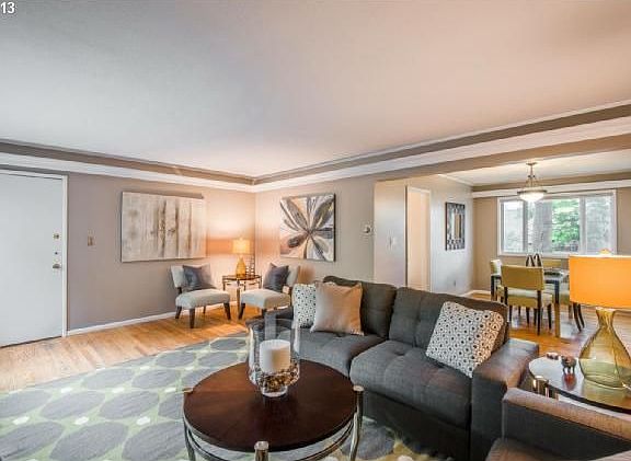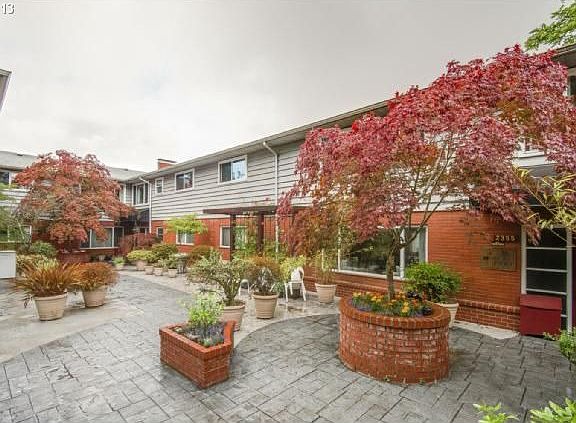 Fantastic location, best of both worlds: 1 blk to Washington Park, 3 blks to NW 23rd. 2 bd 1bth 991 sq.ft, spacious floor plan, hardwds, corner unit, secure underground parking. Quiet, solid building. Small HOA, low dues, new roof, beautiful common courtyard. Upgrades include seasonal depression lighting, custom closet organizers, up/down window treatments.