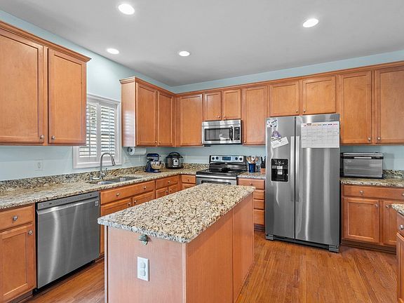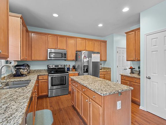 Highly desireable Wakefield home with fenced yard! Features hardwood floors downstairs, office with french door (currently being used as a playroom), open kitchen with center island, granite counters, stainless appliances. Large family room with gas fireplace. Master suite has dual closets and vaulted ceiling. Masterbath with new LVP floor, garden tub and separate shower. 4th bedroom could be bonus room! Amazing fenced yard with deck and new stamped concrete patio with firepit! Community pool and playground. Walk to Shopping! Walk to Wakefield schools! Don't wait, this one won't last long!