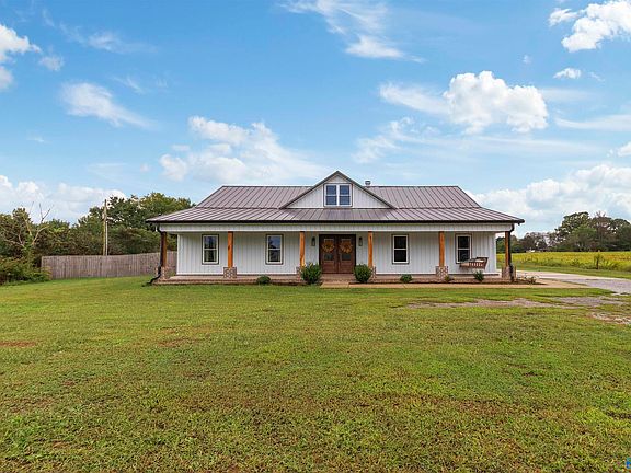 Walk through beautiful double front doors into this open-concept home on over two acres. The bright living area boasts high ceilings, while the modern kitchen offers stainless steel appliances, quartz countertops, and a spacious island. The primary bedroom features a spa-like bathroom with a walk-in tile shower, soaker tub, double sinks, and a large closet. Outside, relax on the covered porch overlooking the expansive yard, perfect for gardening or outdoor activities. A detached garage/workshop adds extra storage and workspace. Enjoy peaceful country living with easy access to local amenities.