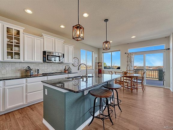 Welcome to your dream home in Inspiration, perfectly situated on the private lot you've been waiting for, backing to open space and a scenic walking trail that parallels Gartrell Road — with no neighbors behind! This stunning two-story home with an unfinished garden-level basement offers 5 spacious bedrooms and 4.5 baths, including a main-floor bedroom with an ensuite bath and a dedicated office. The freshly painted main level boasts beautiful natural hardwood floors, adding warmth and elegance throughout. The heart of the home is the gourmet kitchen, featuring a large island with a breakfast bar, stainless steel appliances, and plenty of cabinet space with the butlers pantry. From the kitchen and great room, you'll be captivated by the amazing views that stretch all the way over the city to the north, where you can watch storms roll in from one of the highest points in Aurora. The sunlit breakfast nook flows effortlessly to the back deck, making indoor-outdoor living and entertaining a breeze. Upstairs, the luxurious primary suite features soaring ceilings, an abundance of natural light from large windows, and a 5-piece bath with a walk-in closet. The backyard is an entertainer's paradise, complete with a spacious deck, a cozy fire pit with plenty of seating, and a luxurious hot tub. You'll also love the unique three-car garage setup — a two-car garage with epoxy floors and a separate third-car garage, perfect for extra storage or a workshop. Located in the highly sought-after Inspiration community, where residents enjoy community events, a pool, dog park, playground, and an extensive trail system, this home truly has it all.