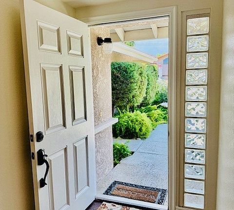 Don't miss this one! Highly upgraded single story home that offers everything you need to live the good life. Best value too for all you get. Fully landscpaed front and back yard with great curb appeal and a gated garden with raised vegetable beds in the backyard. This home is nestled next to the green belt of Evans Park and across the street from the community garden project. From the moment you walk in the front door and stand in the foyer you see the high vaulted ceilings with large wood beams and take in the beautiful chandelier. The custom fireplace is the grand feature of the living room as you gaze out of the wood shutters and view your amazing front yard. The kitchen is around the corner and boasts granite counter tops and newer installed maple cabinets. The indoor laundry room is located with a pocket door from the kitchen so you can mulit-task and it doubles as a utility room you can use for a pantry area. The ceramic wood floors lead you down the hallway to the large bathroom with a custom bath tub and shower enclosure complete with custom stone walls. Across the hall is the first bedroom which is large and can be used as a professional office. There is an access door that leadsfrom this bedroom to the three car garage. One could enter the side of the garage and then enter the house which would be handy if you have clients that you don't want to enter throught the main front door. This is a great option for the working professional who works at home or has a home based business where clients come to see them. If not, you can remove the door and restore the bedroom back to its original glory. The next bedroom is charming with its wood shutters and view of the large side yard. Enter the primary bedroom and you see a great view of the garden from your sliding glass door. The primary bathroom has a walk-in custom stone shower which is a real luxury for those who truly need easy access for showering. This home offers so much whether it's your first house or your last house put this house on your "must see" list!