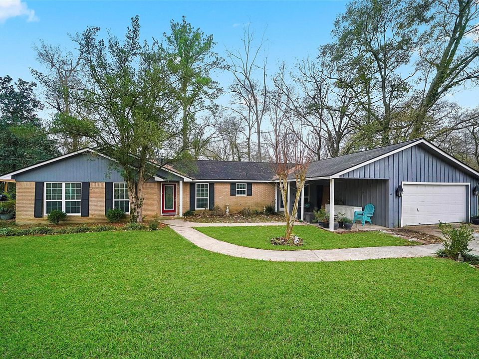 This charming home sits on almost an acre with lake views of one of the three lakes in Tri Lake Estate, nestled among many trees at the end of a cul-de-sac street! This home features 2 primary bedrooms with a split plan, one side has a primary bedroom with a second bedroom and second full bath and on the other side has the other primary bed with primary bath and the gameroom. Beautiful kitchen with all new appliances including a refrigerator which is open to the huge family room with lots of windows looking out to the lake and amazing backyard. Large formal dining room with stained glass windows. Wonderful covered deck in the back and covered porch off of the large mud room. The property is fully fenced and includes a 10x10 storage shed and garden shed. The above ground salt-water pool is excluded but could be purchased separately. Some of the newer updates include the fence, deck, doors and insulated windows.