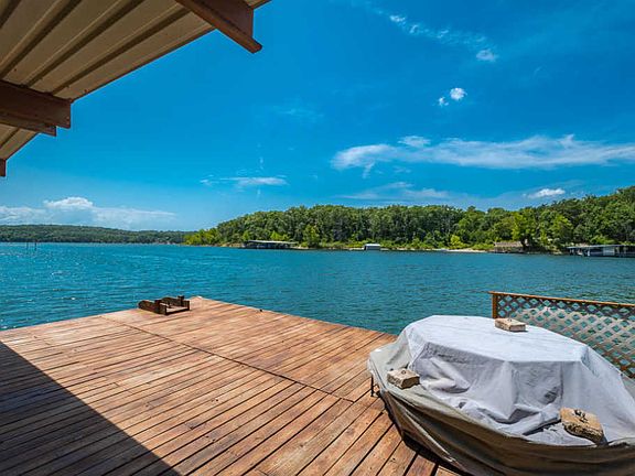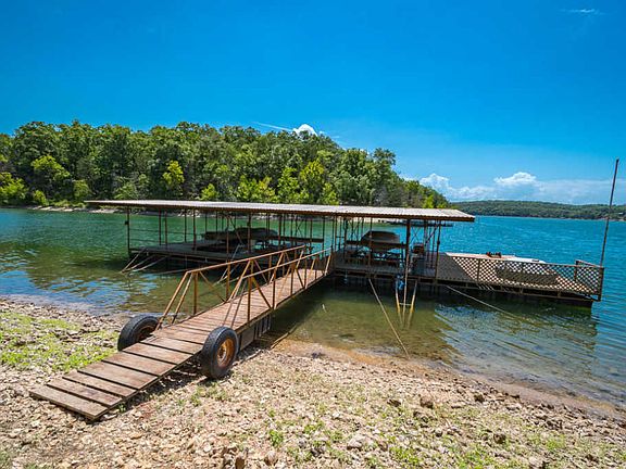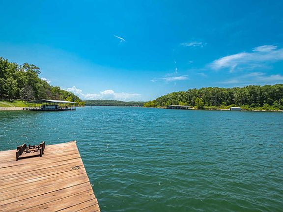 This lakefront retreat will not disappoint - park like setting, 2/3 interest in private dock, cleared to the water and 600' of private shoreline allow you to immerse yourself in the beauty of Table Rock Lake. Impeccable quality exudes through-out this custom built home. The features are endless - Solid brick, abundant windows, cathedral ceilings, granite counter tops and custom cabinets just to get the list started. Also features solid wood trim, crown molding and doors. Over-sized 2 car garages located on both main level and lower level. Not only is it cleared to the water, you are a stones throw away from the boat dock complete with swim platform in quiet cove with little boat traffic. This is a true lakefront haven! Boat slips are 12x26 and 10x24.