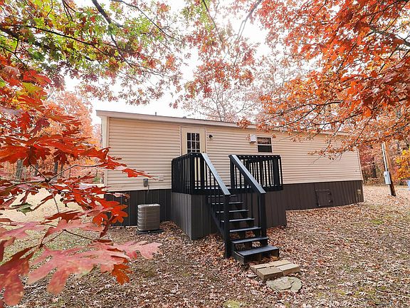 Just minutes from I-44, tucked in the timber sits a recently updated doublewide on nearly 17ac. Home features 3 bedrooms & 2 full bathrooms, a new roof, new flooring throughout, fresh paint, brand new kitchen cabinets, new toilets and all appliances stay. Located at the end of a gravel road, this property has Rual water and a fenced lagoon. This is the ideal property for an outdoor lover or hunter. It's quiet and surrounded with trees. The acreage is mainly timber with an abundance of acorns this year. There are plenty of buck rubs, one being in the yard by the storage shed. Deer are seen frequently on the property. Schedule a showing today!