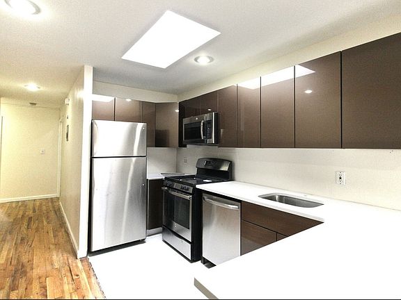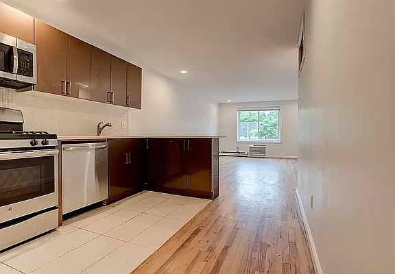 GARAGE & Private Driveway 3 min from the L-train! Located in prime Bushwick just minutes from Highland Park, this newly renovated 3,375 sqft, two-family townhouse is ideal for anyone seeking a long-term investment taking advantage of an income-generating property or multigenerational accommodations. With unlimited potential to expand in the future, this property comes with a total of 4,400 buildable sqft, large driveway and garage parking. The parlor-level apartment features a duplex with an expansive living/dining room, a renovated kitchen with sleek cabinetry and stainless-steel appliances, a large primary bedroom with a private bath, 2 additional sizable bedrooms, and a common bathroom. An abundance of closet space with gleaming hardwood floors throughout completes this space. The garden level boasts a garage, laundry, a third full bath as well as two additional rooms, with backyard access. The second-floor apartment features four bedrooms and two full baths, accented by skylights that stream light. Building Highlights: - Two-family townhouse in prime Bushwick - 4,400 buildable sqft - Garage & driveway parking - Private backyard - Newly renovated - Recessed lighting