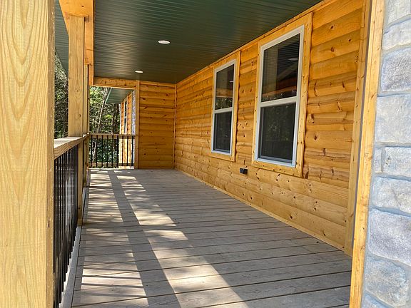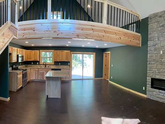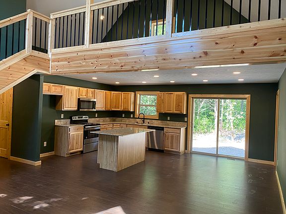 You won't want to miss out on this BRAND NEW 2 bedroom/2 bathroom home that is just a golf cart drive away from the lake. The log siding with stone accents adds to the lake feel. Walking in from the inviting covered front porch, you are greeted by a sky high vaulted ceiling centered by a gorgeous floor to ceiling fireplace. The home features an open concept floor plan with a large loft that provides the perfect space for entertaining. In the kitchen you will find beautiful granite countertops, custom hickory cabinetry, and an island. The master bedroom with an ensuite bathroom, second bedroom, and second full bathroom are all conveniently located on the main floor. This home is complete with a 2 car pull through garage and sits on a wooded lot giving you a private setting while still being within minutes to town and marinas. Call today for your private showing!