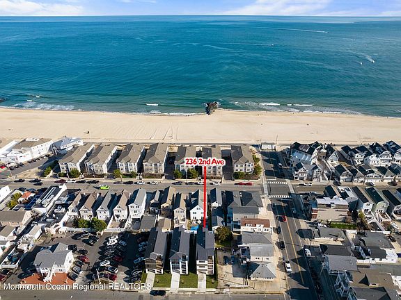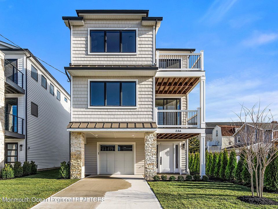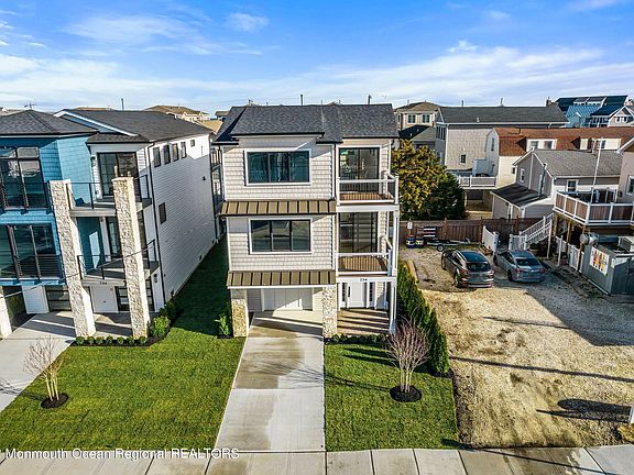 Imagine living in this beautiful modern, spacious, well-appointed, newly constructed home. This Manasquan property is located two blocks from the beach. This custom-built home has two levels of living space with hardwood flooring throughout. The first level features a spacious open floor plan. The kitchen offers a large well-appointed quartz island adjacent to the dining room & living room. The luxurious layout naturally flows out to a spacious Deck perfect for family barbecues or relaxing in the Summer breeze. The first level has a laundry room with spacious custom cabinetry and an en-suite bedroom. The second level features a primary bedroom suite with a bathroom, custom walk-in closet, balcony, and two additional bedrooms. A full bathroom completes the second level. This home offers coastal living in true modern style, comfort, and convenience in the perfect beach town of Manasquan.