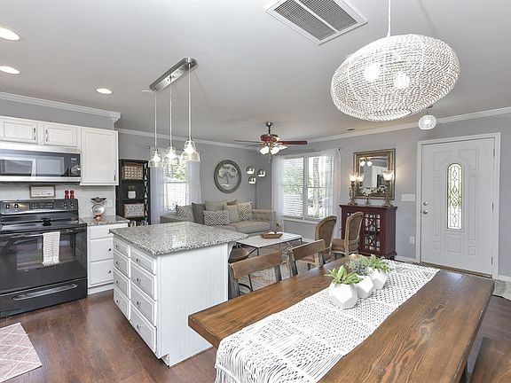 - RoomKitchenFeatures: Eat-in Kitchen, Counter Tops-Formica, Floors-Vinyl, Cabinets-Painted