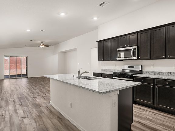 The Payson floor plan is a versatile home designed to meet any family's needs with four bedrooms, two bathrooms and an open living spaces. The kitchen features a convenient island for meal prep, while the adjoining dining room offers a comforting atmosphere for family meals and entertaining guests. The master bedroom provides a peaceful retreat with an en-suite bathroom and spacious walk-in closet that is perfect for relaxing and unwinding after a long day. Step outside onto the covered back patio for outdoor dining and relaxation. With thoughtful design and upgraded features, the Payson floor plan offers comfort, functionality, and style for easy family living.