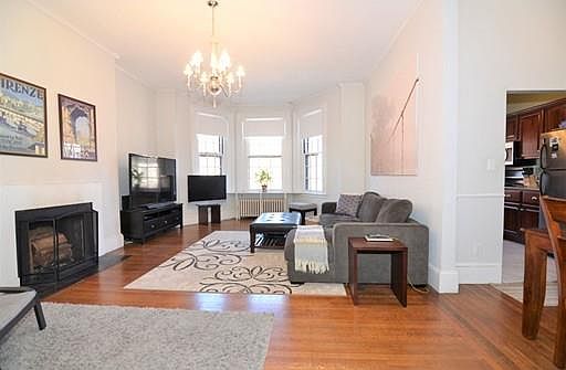 Marlborough Street 1,428 Sq Ft Floor thru Condo with high ceilings & hardwood floors thru-out. This decadent Back Bay gem boasts two fireplaces! Amazing proximity to downtown, located on a quiet tree lined street. Heat & Hot Water included. Free Laundry in building. No Undergrads Please.