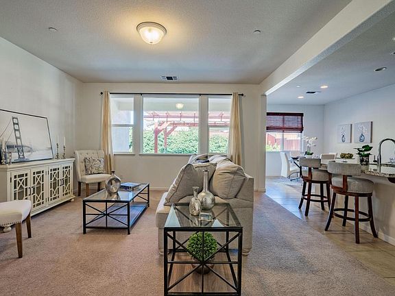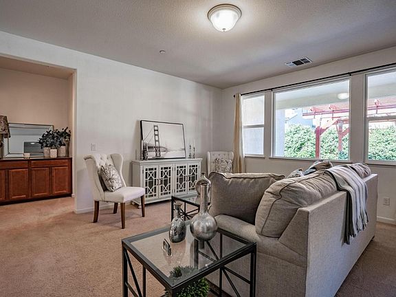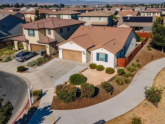 Check out this terrific 3 bed, 2 bath, 7 year old home in Hollister. This home is ideally situated in the Village at Santa Ana near the parcourse and walking trail. There is a neat park nearby and the home is located at the end of a cul-de-sac. There is also a seasonal creek nearby that provides a nice touch of nature. This home offers low maintenance, drought tolerant landscaping as well as a nice patio with pergola in the backyard. Inside, the guest bedrooms are separated from the primary by the living space. The home comes with central air conditioning and indoor laundry. The two car garage has been drywalled.