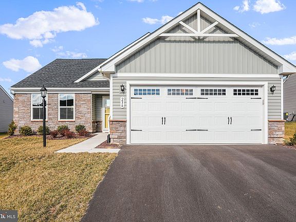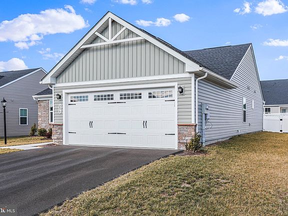 Beautifully maintained 3 bedroom 2 bath home all on one level. All you have to do is move in, enjoy this splendid home. This home was designed with all the windows in the right place to make the home bright, airy and welcoming. Primary bedroom has its own bath with a tile walk in shower, double vanity and large walk in closet. Guests bedroom and office is separate from Primary area for your privacy. Hall bath has a tiled shower. Open kitchen with quartz counter tops, farm sink, lower cabinets have pull outs and a large island. Kitchen, dining area and living room are open concept. Upgraded Luxury Vinyl Plank throughout the home. Beautiful crafted doors. Off of dining room is a sliding glass door that leads to your covered porch and patio with pavers. The backyard is fully fenced with vinyl fencing. Over sized 2 car garage with built in shelving for storage. Whirlpool washer and dryer convey. Close to Route 9 and Int. 81., Martinsburg, Charlestown, the VA Medical Center
