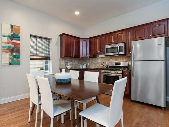 Have you dreamed of entertaining in your very own backyard? Well this is the home for you. Rare and sought after 3 bedroom, 2 full bath unit with oversized and fenced in backyard for your enjoyment! This beautiful home offers high ceilings, open concept kitchen, dining and living area with beautiful cherry cabinets, granite counters and backsplash, and stainless steel appliances! Hardwood floors throughout the home and three spacious bedrooms including a beautiful master suite with adjoining master bath complete with double sink, shower and tub! Your backyard offers so much space and options for spending time outdoors! Add to the list additional storage and laundry plus easy - short, walking distance to NYC transportation and you can stop your search!