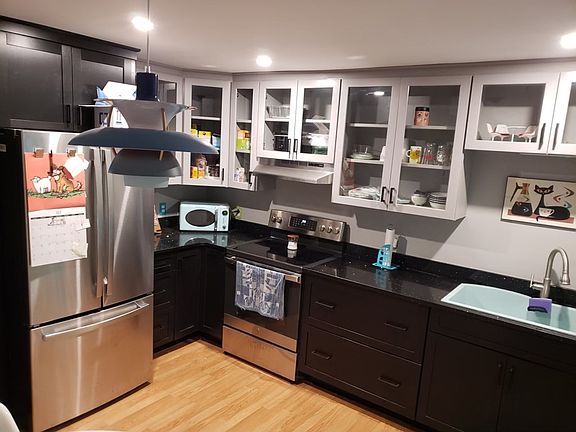 Two bedroom, one bathroom condo with low condo fee of $200! In 2021 brand new kitchen..cabinets, sink, plumbing, recessed lighting and dimmers, Stainless Steel stove and fridge. ceiling fan added to living room, new bathroom with new toilet, shower, sink, vanity and floor. new water heater January 2022. 2 washers and 2 dryers shared in the basement. Pergo throughout and bedrooms carpeted. New in 2020. no dogs allowed. open parking lot. Storage in basement is 12X12.