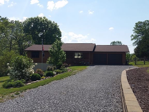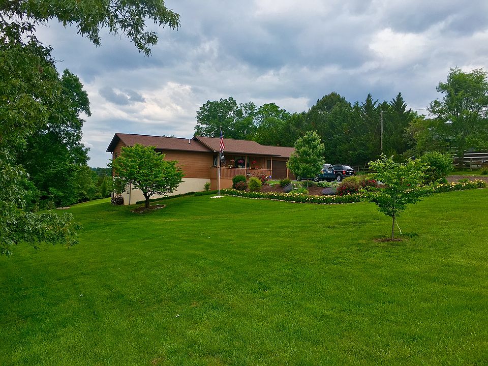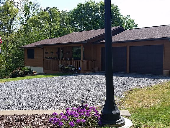 Home with dreamy 1 acre yard and abundance of mature fruit trees and plants. Bluff Mountain View is in the distance. Immaculate! Enjoy your covered front and back porches. Enter into bright and cheery great room that flows into open dining area. Kitchen to the right with Stainless Steel appliances. Laundry room (washer dryer included) and 2 car garage. Down the hall are 3 bedrooms and 2 full baths. 1 in master. Downstairs find another sleeping room, huge rec/play/media room with wall of closets for ample storage along with the 3rd garage. Fire pit for enjoying afternoons and into the nights. Convenient to Schools, Shopping, Hospital and Mountains.