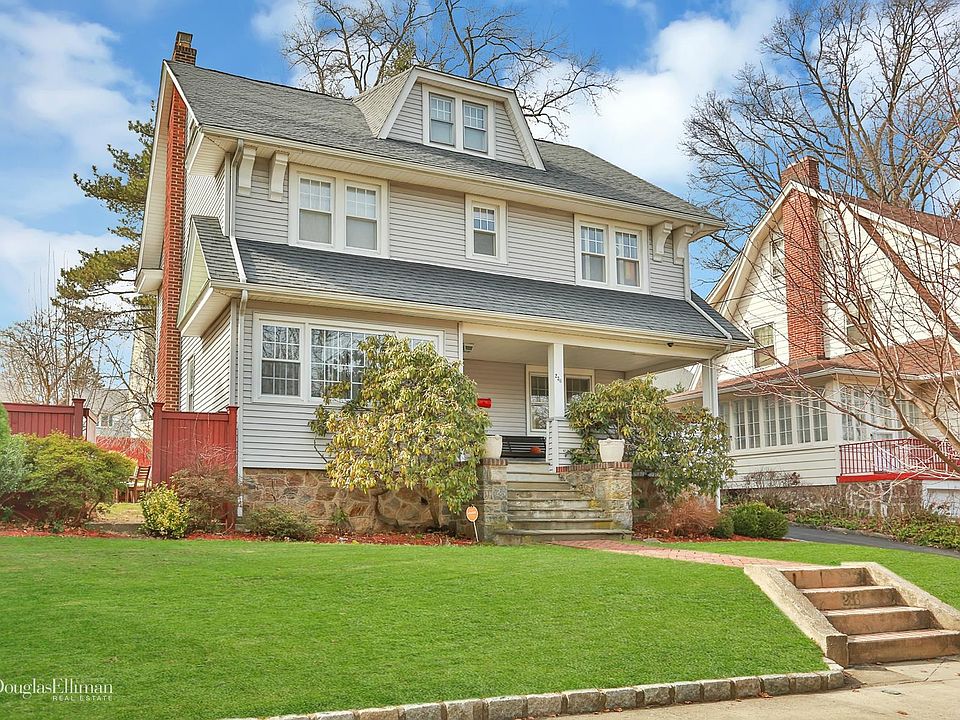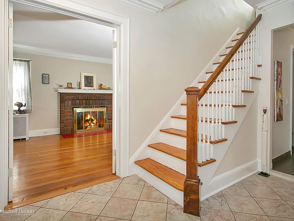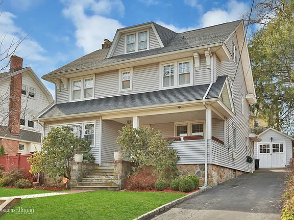 Sited on a gentle rise and set back from the street this perfectly sweet Dutch Colonial stands tall and proud. A lemonade sipping and dining porch is a great place to arrive. Step in to a tiled entry foyer where high ceilings and sunny rooms greet you. Through the French doors you will be swept into an expansive 30 foot long living room which enjoys the warmth of hardwood flooring and a wood burning fireplace. A formal dining room is also wonderfully proportioned for meals with family & friends.Stainless appliances, granite -topped counters and lots of pantry storage in the large eat-in kitchen make grilled cheese or homework time a snap! Upstairs on 2nd level are 4 bedrooms & an updated full bath ..but wait..there's more! 3rd level has 2 more bedrooms (1 is currently being used as a walk-in closet for the master "suite") and a euro-styled full bathroom with double sinks.Finished storage & bath downstairs. Energy efficient windows, patio,fenced yard, garage & low taxes & 1 mile to RR.