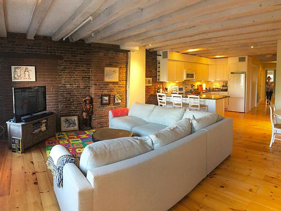 Stunning and spacious two bedroom apartment located just feet away from Boston Harbor. This unit has been beautifully updated and features wide knotty pine hardwood floors throughout the space. Each bedroom is a great size with ample sunlight and closet space. The kitchen has granite counter tops, gas cook stove, dishwasher, disposal and flows right into the large living area. Brick and beam accents highlight the room as well as a view of the boats in the Harbor. There is a washer/dryer IN UNIT, central AC, Heat and Hot Water included! $3,600/month- Available 2/1/19. Owner pays heat and hot water