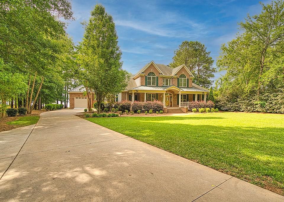 Welcome to an extraordinary find within the prestigious Grand Harbor community on Lake Greenwood. This impeccable waterfront retreat boasts an acre lot on a peninsula, offering unparalleled long-range water views. As you approach, a picturesque tree-lined driveway, flanked by a stately brick wall entrance, sets the tone for the timeless elegance that awaits. Prepare to be enchanted by the Southern Living designed yard, adorned with Azaleas, Dogwoods, Magnolias, Camelias, and Hollies, creating a botanical oasis that greets you upon arrival. The exterior of the home showcases superior craftmanship with handcrafted brickwork, showcasing soldiers, jacks, quoins, rowlock, and keystones. Southern hospitality shines through with covered porches gracing both the front and back of the home, offering inviting spaces to unwind in style and entertain guests. Step inside and discover a world of refined luxury and attention to detail. Santos Mahogany floors lead you through the foyer. There is a wine room on the right, designed with shelving for your prized collection. A formal dining room with a built-in China cabinet is on the left. The grandeur of the great room unfolds with eighteen-foot coffered ceilings, a floor-to-ceiling arched real wood burning fireplace, and gorgeous arched Pella windows flooding the room with natural light. A wet bar and subzero 40 bottle wine refrigerator are part of this elegant space. French doors provide access to the rear porch, offering a seamless indoor-outdoor flow. The heart of the home lies in the chef's dream kitchen, boasting only the finest materials including Zodiac Quartz countertops and top-of-the-line Sub-Zero, Kitchen Aid, and Wolf appliances. A culinary masterpiece, complete with custom cabinetry, a pantry, an eat-in bar, a gas cooktop, a wall oven with a warming drawer, a wall microwave, and a dishwasher. A panel front refrigerator integrates with the surrounding cabinetry to create a beautiful, refined look. A spacious island in the center is ideal for prepping meals and entertaining. The kitchen's breakfast area is lakeside. Retreat to the main floor primary suite, a sanctuary of tranquility and luxurious amenities. The bedroom features a tray ceiling, large windows, and access to the rear porch. Pamper yourself in the rejuvenating Air-Jet tub or unwind in the separate shower, all adorned with Kohler Faucets and Baldwin Brass hardware. The tub sterilizes itself after each use. Upstairs, guest quarters await with three spacious bedrooms, two full baths, and a bonus room.Step outside to discover a plethora of outdoor amenities designed for relaxation and entertainment. High-end speakers strategically placed throughout the property. Trex decking providing durability and low maintenance. The professionally designed and landscaped grounds offer a serene oasis with a screened gazebo and fire pit area, against the backdrop of stunning water views. A beautiful Keystone retaining wall ensures both beauty and protection. The covered boat slip with electric boat and jet ski lifts offer convenience for water enthusiasts. An extended sitting area beckons for leisurely days on the water. Additional features include new HVAC installed in 2022 for added comfort and efficiency. A two-car garage and a separate heated garage for a golf cart, mower, or antique car. It has 400 amp electric service and there is100 amp service for outdoors/gazebos, dock, etc. Grand Harbor amenities include a gated entry, an 18 Hole Davis Love III Signature Designed Patriot Golf Course, Golf Clubhouse with Bar & Grille & Lounge, Full-Service Pro Shop, Fitness Complex, Soft Clay Tennis Courts, Pickle Ball Courts, a community Marina, a lakefront Aquatic Center, which features outdoor dining, an open-air Cabana Bar & Grill and a 5,000 square-foot pool with lap lanes, a children's pool, and a white sandy beach area. Schedule your private tour today and make your dream of lakeside luxury a reality.