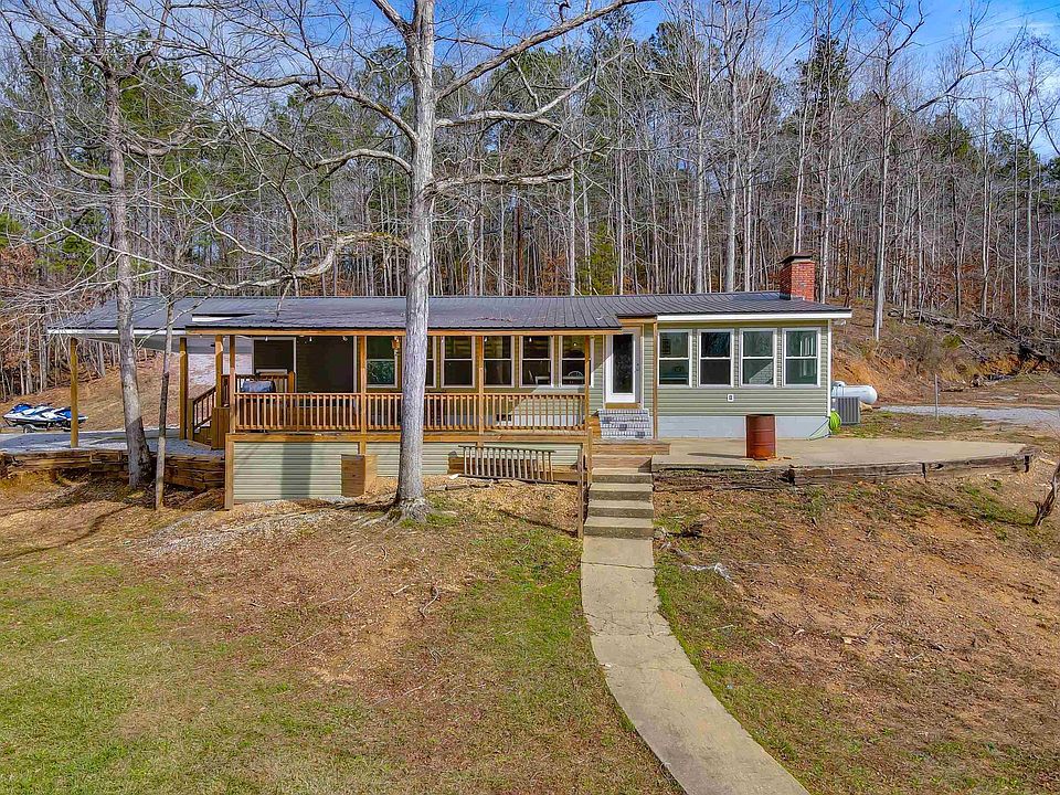 Cute as a button house with 160' waterfront on a flat and level lot to waters edge. New Metal Roof less than 1 year old, Appliances less than 1 year old, HVAC approx. 4 years old, new plumbing approx. 5 years old, new vinyl siding less than 1 year old, 2 stall enclosed boathouse with electric lift in boathouse and attached swim pier. Quiet cove for swimming and fishing. Peaceful view of water to wake up by on new covered deck overlooking the water. This could be either a fulltime or weekend getaway and move in ready.