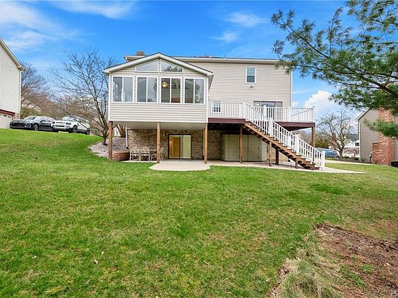 WOW! Freshly painted and CLEAN! Move right in! Gorgeous custom eat-in kitchen with upgraded cabinetry, quartz countertops, & SS appliance package including double ovens & a microwave drawer! 1st floor laundry! Amazing custom sun room w/ skylights, ceiling fan, & French doors. Family room with fireplace & wood beam accents. Spacious dining room and bonus living room! Large owners suite with tray ceiling & a walk-in closet w/custom built-ins. Owners bath w/linen closet, soaking tub, water closet & dual sinks! Spacious guest bedrooms! Bright full hall bath with skyslight! Finished walkout basement w/ bonus full bath. Enjoy the beautiful views from the large deck or covered patio! The usable yard is accented with mature landscaping. Large 2-car garage! Updates: Fresh Paint 2022; Furnace last serviced 2022; 14 windows replaced 2021; Water Heater 2020; Kitchen remodel 2017; Roof 2013; Close to main roads, shops, restaurants & Seven Fields Community Center. Being sold AS-IS.